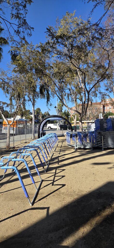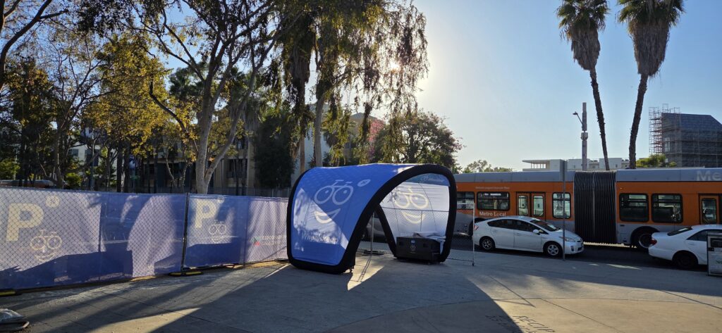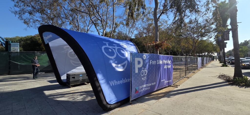 Expo Parc has counted with Wheelskeep parkings for activate the micromobility by bike or scooters. 300feet to the Coliseum stadium, Wheelskeep has implanted an area where riders can had their bikes repaired.